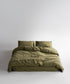 Stonewash 100% Soft Cotton Duvet Cover Set Olive